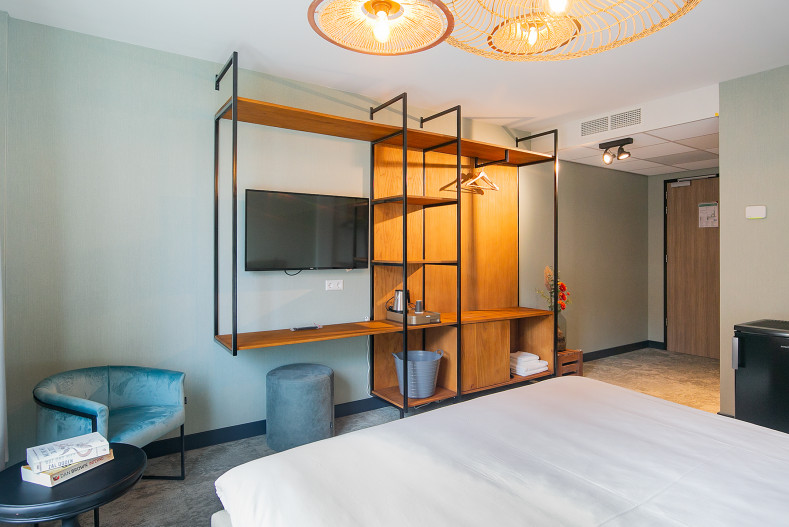 De drempelvrije kamer is ruim en beschikt over alle faciliteiten en voorzieningen die je van een luxe 4-sterrenhotel mag verwachten. De mindervalide hotelkamer heeft een aangepaste badkamer en toilet. Daarnaast is de keuken verlaagd en zijn er in de kamer zelf extra aanpassingen gedaan om je verblijf zo comfortabel mogelijk te maken.