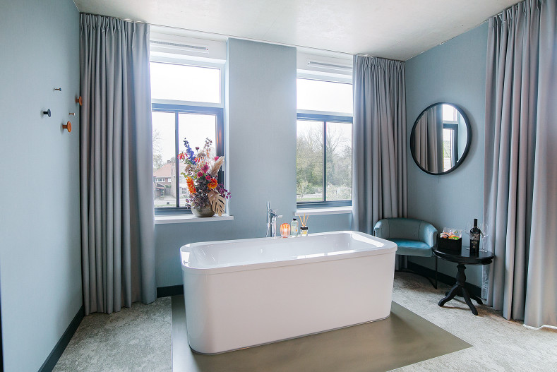 The Hotel Marktstad’s Suite is a considerable size, has a large double bed (King Size), a lovely bath, a kitchen, a seating area and a balcony. The Suite has a luxurious look and feel and is furnished in a modern style. The Suite is easily accessible by stairs or lift.